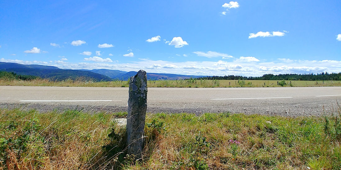 Les montjoies sont ces grandes pierres plantées de 2 mètres (8 pieds) de haut environ disposées, à peu près tous les cent pas. Elles sont destinées à marquer le chemin par les temps de neige. Elles ont été aménagées au milieu du XVIIIe siècle. A leur sommet, on disposait une longue pierre horizontale, parallèlement au chemin, afin de donner la direction de la route au voyageur... Les pierres actuelles ont été dressées au cours du XIXe, pour remplacer les anciennes en maçonnerie. Celles-ci sont en gneiss.